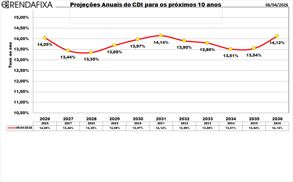 Mesmo com o gráfico refeito, é importante lembrar que projeções tão longas para CDI têm enorme grau de incerteza. Projetar 10 anos à frente em taxa nominal envolve suposições fortes sobre: